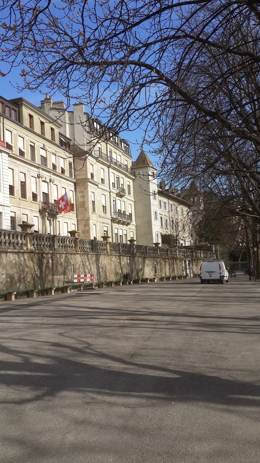 Eski şehrin bitiminde uzunca bir bank yapılmış alt kısımda kalan Cenevre’nin arka taraflarını seyretmek için bu görünen yer üniversite.