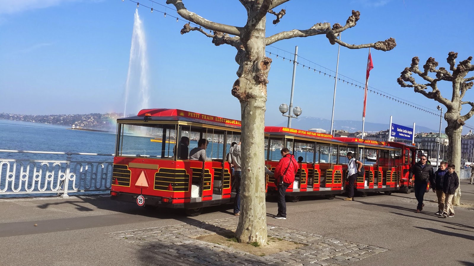 Dönüşte Cenevre gölünü gezdiren bu küçük trene rastladık.